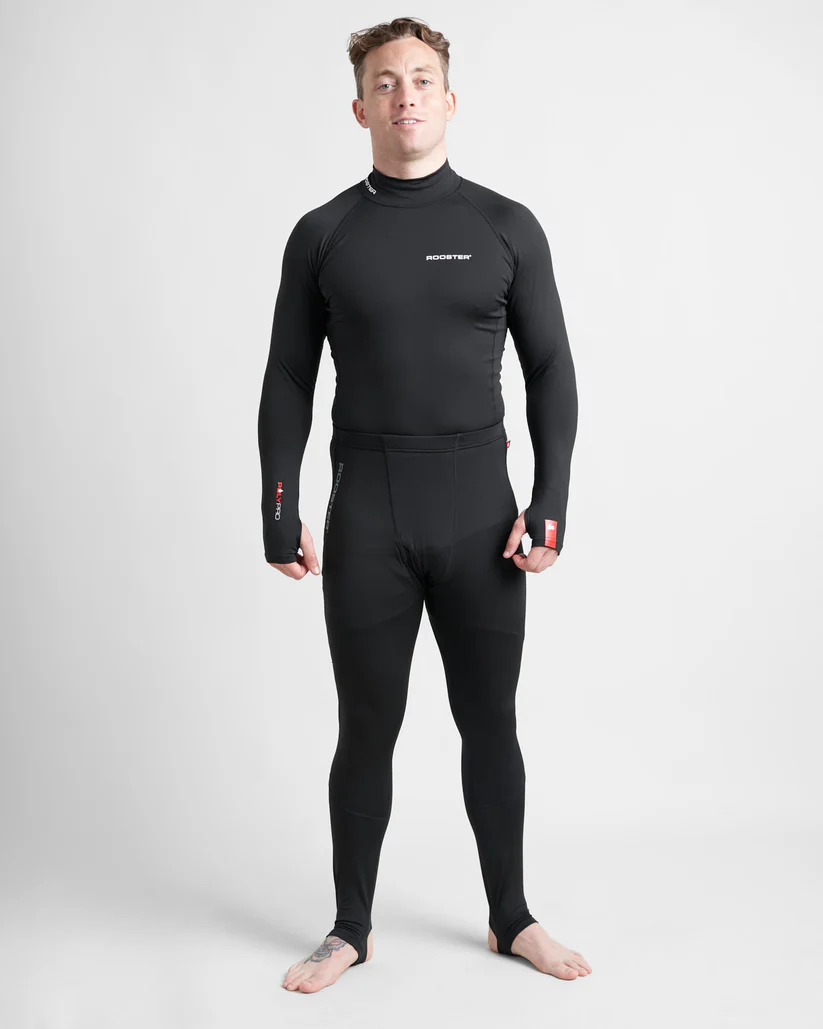 Rooster Polypro™ è costruito con una combinazione di Polypropylene (94%) ed Elastane (6%). Abbiamo spazzolato la superficie interna del tessuto per conferirgli una consistenza spessa, simile al pile, di alta qualità, che risulta incredibilmente calda e morbida a contatto con la pelle. Il capo risultante fornisce eccellenti qualità termiche, rendendolo lo strato base perfetto. Il Polypropylene è naturalmente idrofobico, il che significa che il tessuto rimane notevolmente asciutto, anche quando è bagnato. Indossalo a contatto con la pelle sotto i nostri Longjohns e Tops in neoprene – in effetti, le possibilità sono infinite – i nostri strati base Polypro™ sarebbero ottimi sotto la tua tuta da sci, muta stagna, per il ciclismo invernale, il kayak, le passeggiate e ogni volta che hai bisogno di uno strato base termico.
